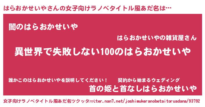 | 男性向けラノベタイトル風あだ名 | 『はらおかせいやという概念が存在しない退屈な世界 』 |