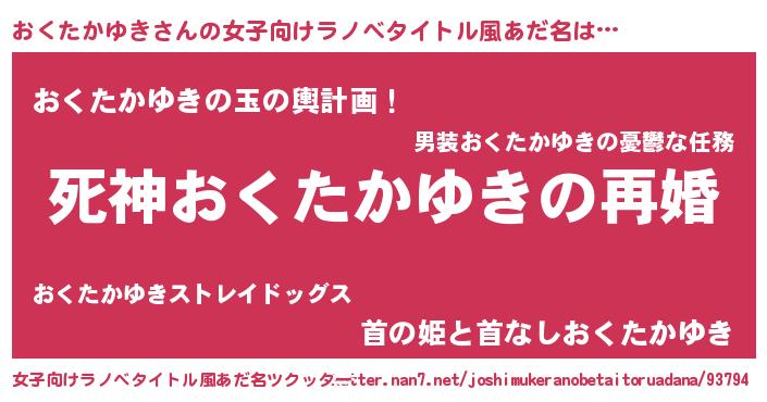 | 男性向けラノベタイトル風あだ名 | 『ノーゲーム・ノーオクタカユキ』 |