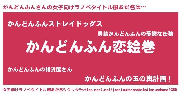 | 男性向けラノベタイトル風あだ名 | 『ノーゲーム・ノーカンドンフン』 |