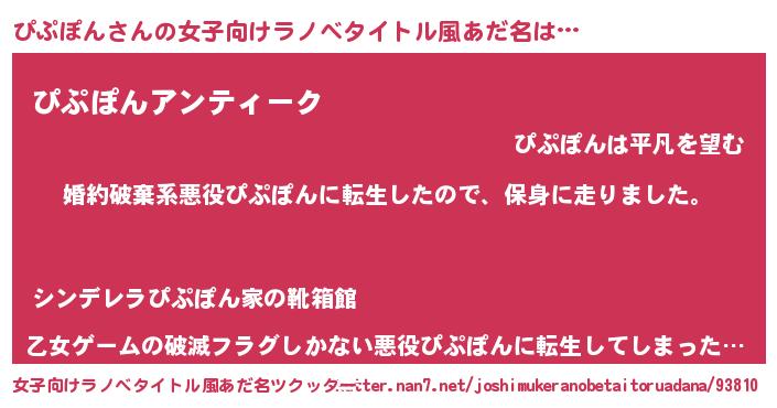 | 男性向けラノベタイトル風あだ名 | 『ピプポンスレイヤー』 |