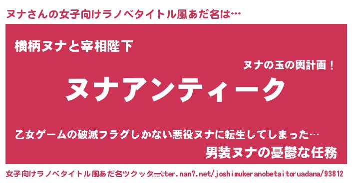 | ヘコむあだ名 | 『ヌナ(笑)』『レバニラ』『ヌナにー』 |