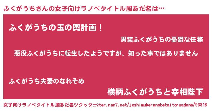 | 男性向けラノベタイトル風あだ名 | 『この素晴らしい世界にふくがうちを!』 |