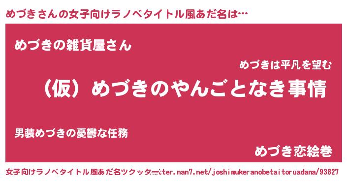 | 男性向けラノベタイトル風あだ名 | 『めづきの憂鬱』 |