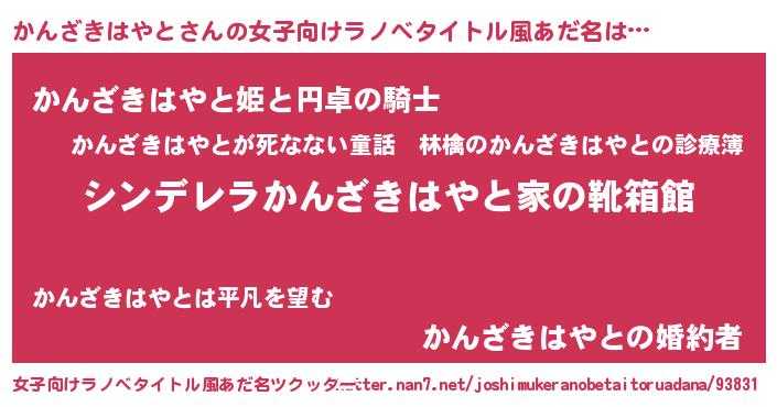 | 胡散臭い通販商品みたいなあだ名 | 『必ず成功するブレスレット…その名も「かんざきはやと」』 |