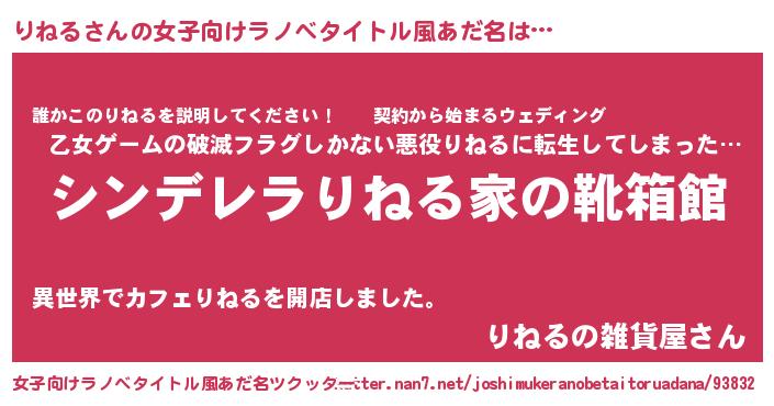 | 胡散臭い通販商品みたいなあだ名 | 『モテモテ間違いなし霊験あらたかなお札…その名も「りねる」』 |