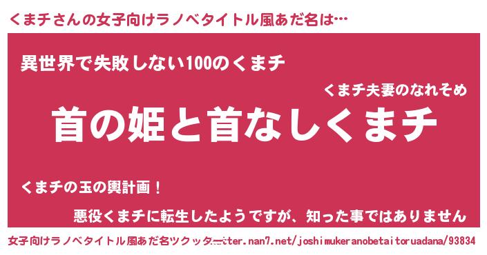 | 男性向けラノベタイトル風あだ名 | 『はたらくくまチさま!』 |