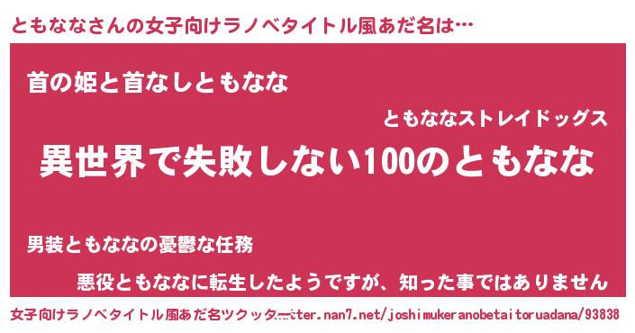 | 胡散臭い通販商品みたいなあだ名 | 『絶対に幸福をもたらす水素水…その名も「ともなな」』 |