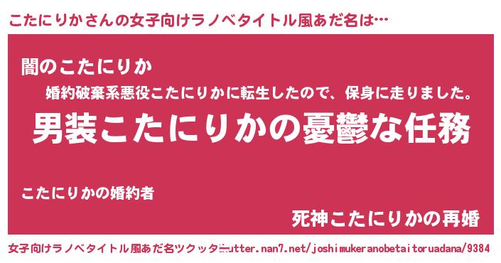 | 胡散臭い通販商品みたいなあだ名 | 『テレビで話題の高麗人参…その名も「こたにりか」』 |