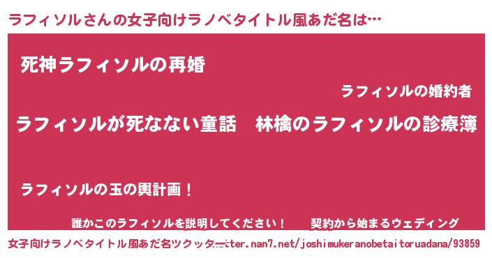 | ヒーロー風カッコイイあだ名 | 『仮面ラフダー』『慈愛の使者ラフィソル』 |