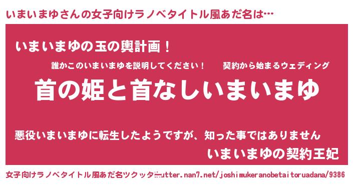 | 男性向けラノベタイトル風あだ名 | 『はたらくいまいまゆさま!』 |