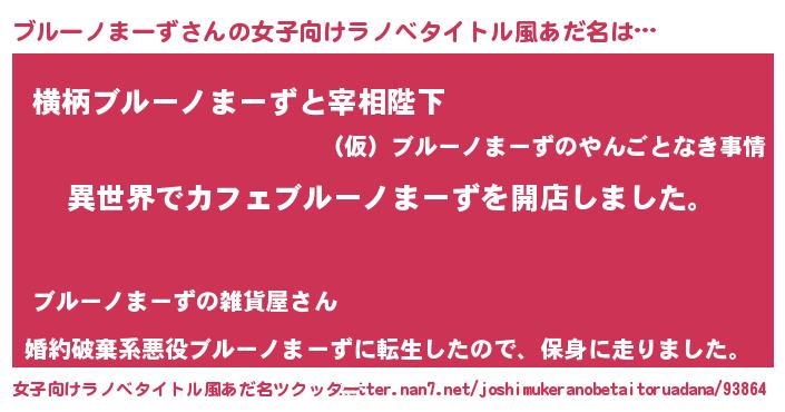| 男性向けラノベタイトル風あだ名 | 『誰もが恐れるあのブルーノまーずが、ぼくの専属メイドになるようです。』 |