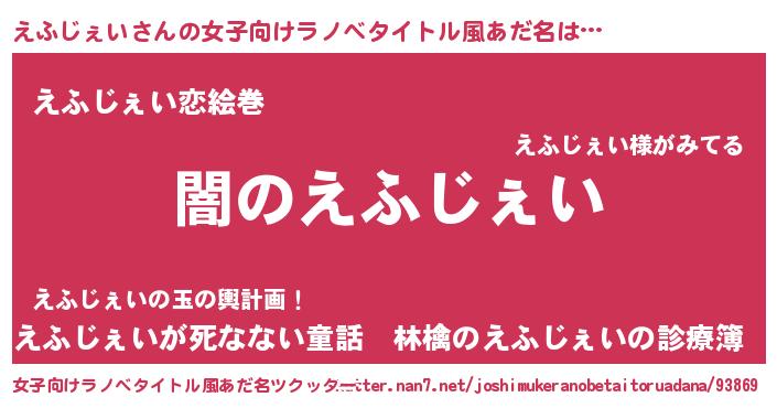 | 男性向けラノベタイトル風あだ名 | 『Re:えふじぇいから始める異世界生活』 |