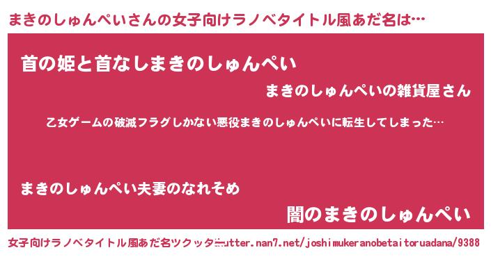 | 男性向けラノベタイトル風あだ名 | 『魔弾の王とまきのしゅんぺい』 |