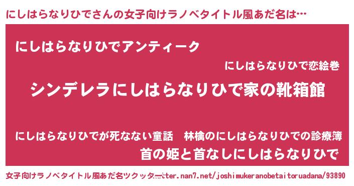 | 胡散臭い通販商品みたいなあだ名 | 『ガンによく効く高麗人参…その名も「にしはらなりひで」』 |