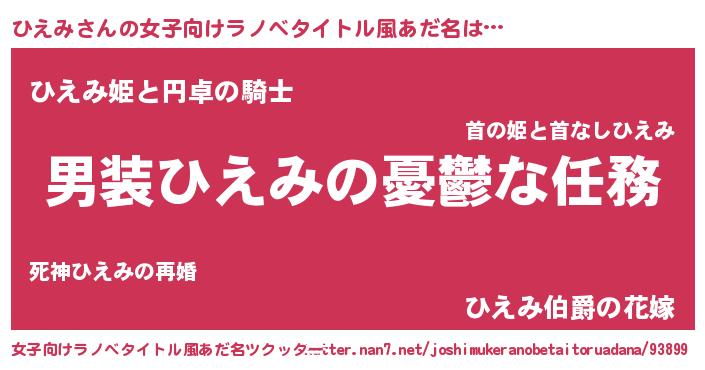 | 男性向けラノベタイトル風あだ名 | 『うちのひえみが世界を掌握している!』 |
