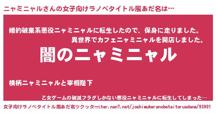 | 胡散臭い通販商品みたいなあだ名 | 『芸能人もオススメする高麗人参…その名も「ニャミニャル」』 |