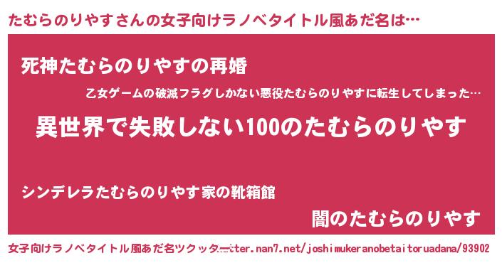 | 男性向けラノベタイトル風あだ名 | 『たむらのりやすという概念が存在しない退屈な世界 』 |