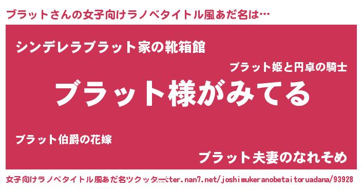 | 男性向けラノベタイトル風あだ名 | 『ブラットの嫁は女の子じゃないと思った?』 |