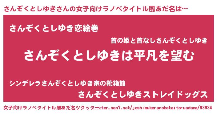 | 意味不明あだ名 | 『とにかく怪しいさんぞくとしゆき』 |
