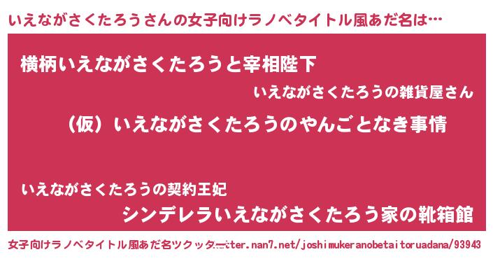 | 男性向けラノベタイトル風あだ名 | 『いえながさくたろうの憂鬱』 |