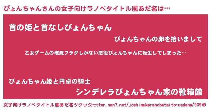 | 胡散臭い通販商品みたいなあだ名 | 『世界中を虜にした100年もののヴィンテージワイン…その名も「びょんちゃん」』 |