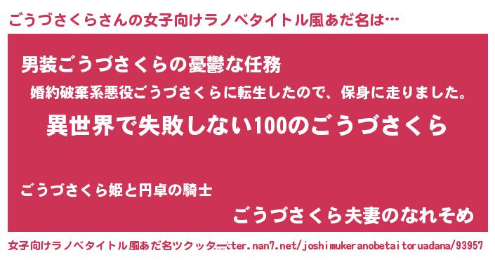 | 男性向けラノベタイトル風あだ名 | 『ごうづさくらという概念が存在しない退屈な世界 』 |