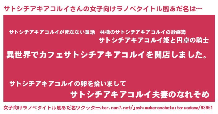 | 意味不明あだ名 | 『永久保存サトシチアキアコルイ』 |