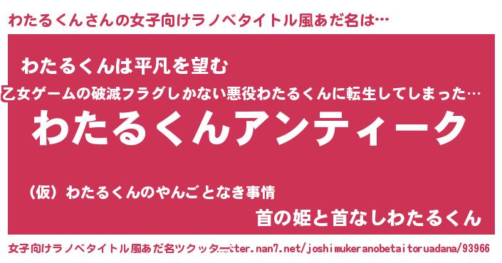 | 男性向けラノベタイトル風あだ名 | 『魔法科高校のわたるくん』 |