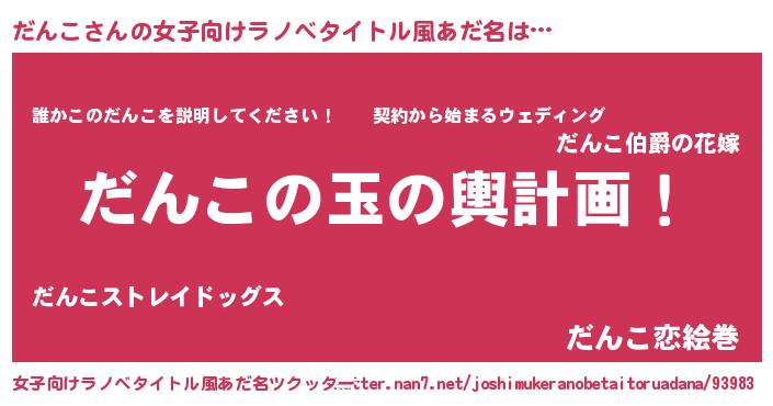 | 男性向けラノベタイトル風あだ名 | 『転生したらだんこだった件』 |