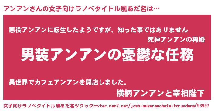 意味不明あだ名 | 『住所不定無職アンアン(86歳)』 |