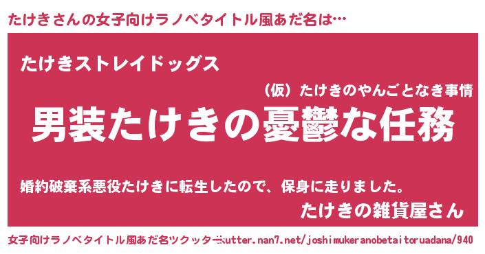 | 意味不明あだ名 | 『自称たけき』『たけきフォーエバー』 |