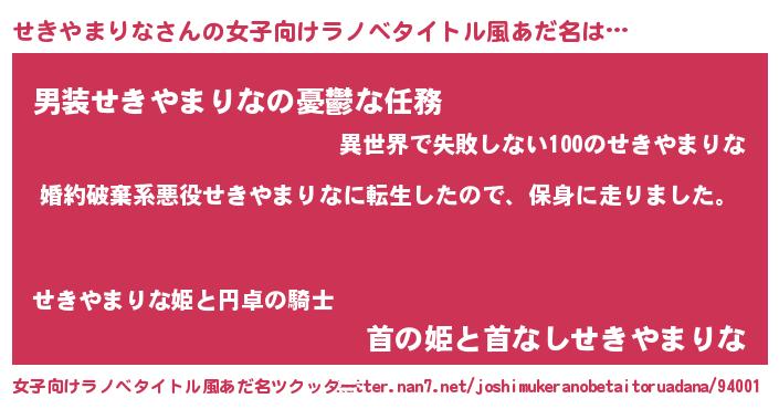 | ヘコむあだ名 | 『せきやまりな(小並感)』『せきもー』 |