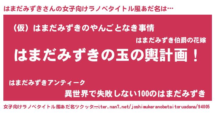| 胡散臭い通販商品みたいなあだ名 | 『億万長者になれるブレスレット…その名も「はまだみずき」』 |