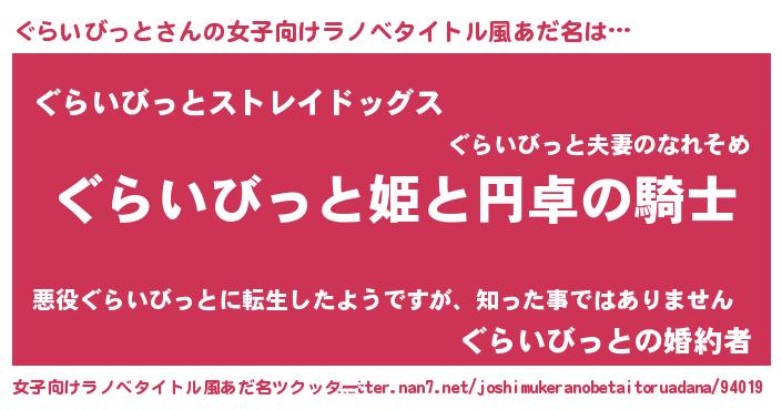 | 男性向けラノベタイトル風あだ名 | 『ぐらいびっとの憂鬱』 |