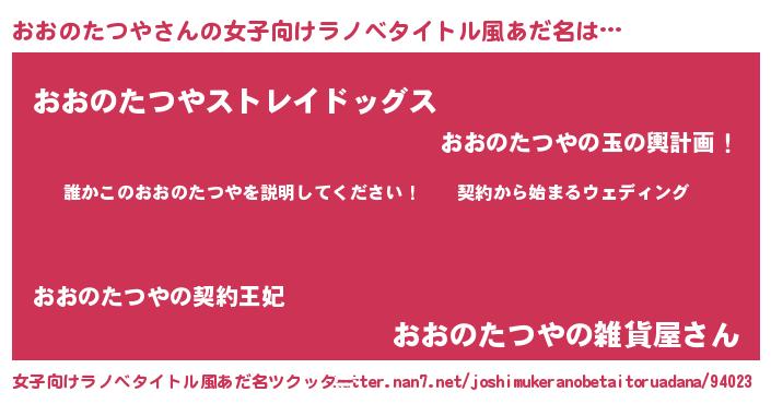 | 肩書あだ名 | 『おおのたつや社長』『おおのたつや総統』 |