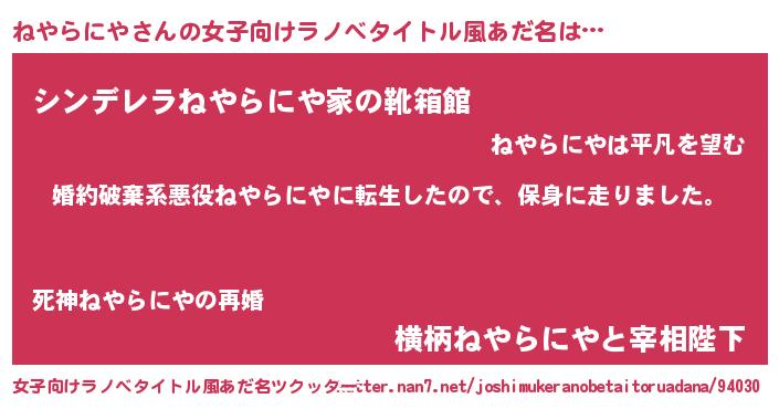| 料理風あだ名 | 『ねやらにやごはん』 |