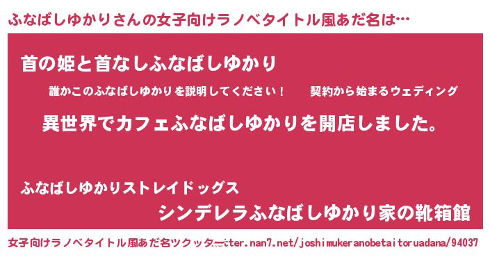 | ヘコむあだ名 | 『ふなばしゆかり(笑)』『ふなもー』 |