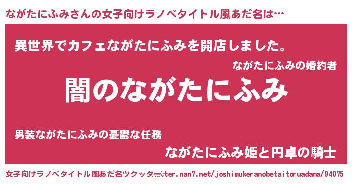 | 男性向けラノベタイトル風あだ名 | 『Re:ながたにふみから始める異世界生活』 |