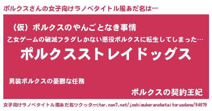| ヘコむあだ名 | 『ポルふぇ~』『ポルクス(小並感)』 |