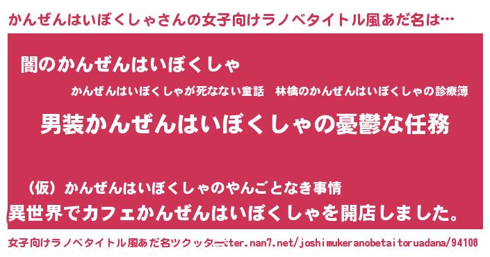 | ヘコむあだ名 | 『かんぜんはいぼくしゃ(笑)』『かんにー』 |