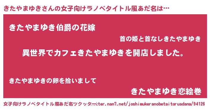 | ヘコむあだ名 | 『きたやまゆき(笑)』『なまこ酢』 |