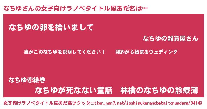 | 胡散臭い通販商品みたいなあだ名 | 『億万長者になれる水晶球…その名も「なちゆ」』 |