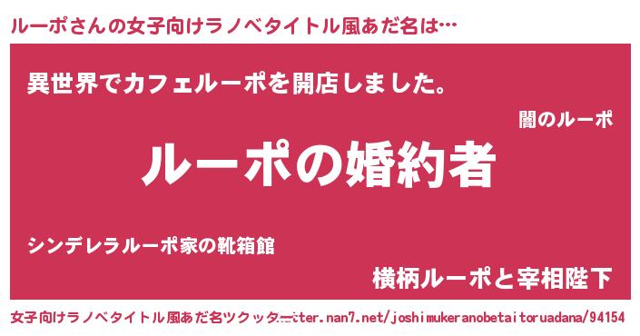 | ポケモン風あだ名 | 『ルーポダネ』『ゼニルー』 |
