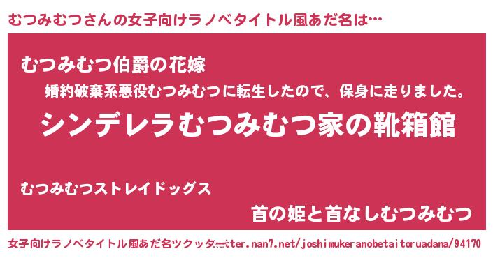 | 男性向けラノベタイトル風あだ名 | 『緋弾のムツミムツ』 |