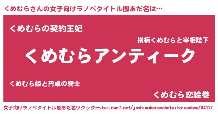 | 意味不明あだ名 | 『自称くめむら』『永久保存くめむら』 |
