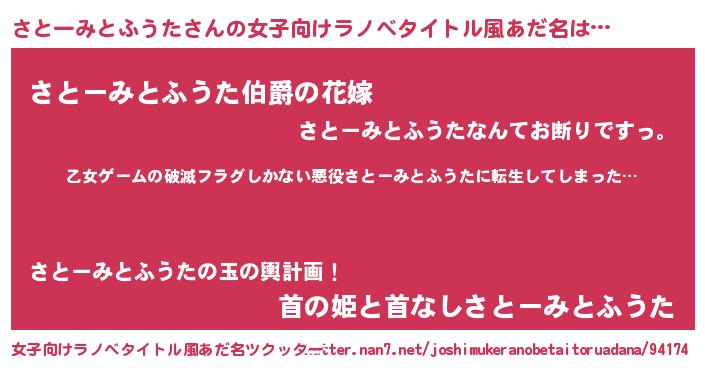 | 欧米人風あだ名 | 『ダレノガレさとーみとふうた』 |