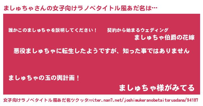 | 胡散臭い通販商品みたいなあだ名 | 『あなたにだけ特別に提供する限定10本のレアな日本酒…その名も「ましゅちゃ」』 |