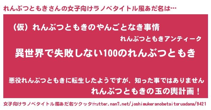| 男性向けラノベタイトル風あだ名 | 『れんぶつともきという概念が存在しない退屈な世界 』 |