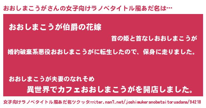 | 男性向けラノベタイトル風あだ名 | 『オオシマコウガスレイヤー』 |