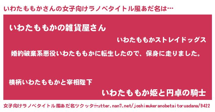 | 男性向けラノベタイトル風あだ名 | 『イワタモモカスレイヤー』 |